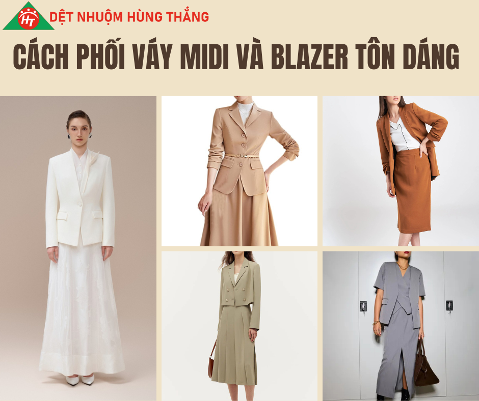 CÁCH PHỐI CHÂN VÁY MIDI VÀ BLAZER ĐỂ TÔN DÁNG